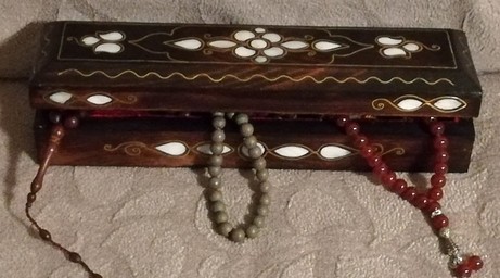 Wir verarbeiten Sedef-Steine (Perlmuttsteine), kommen aus Gaziantep sowie aus dem roten Meer, auf Walnussbaumholz. Sedef-Steine sind organische Substanzen, die die innere Schicht bestimmter Mollusken bildet. Diese Steine sorgen für innere Ruhe, geben der Seele Kraft und verleiten zu positiven Denkweisen.
